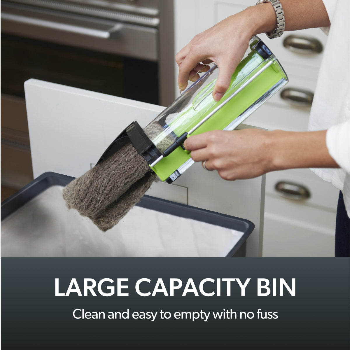 • Detachable bin for fast, hygienic emptying
